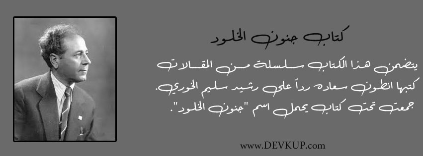 يتضمن هذا الكتاب سلسلة من المقالات كتبها انطون سعاده رداً على رشيد سليم الخوري جمعت تحت كتاب يحمل اسم “جنون الخلود”.